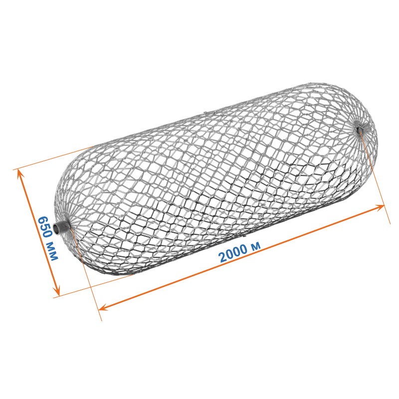 Цилиндрический габион 2x0,65x0,66 изготавливается из сетки двойного кручения. Он имеет форму цилиндра. Часто такие габионные конструкции называются мешками.