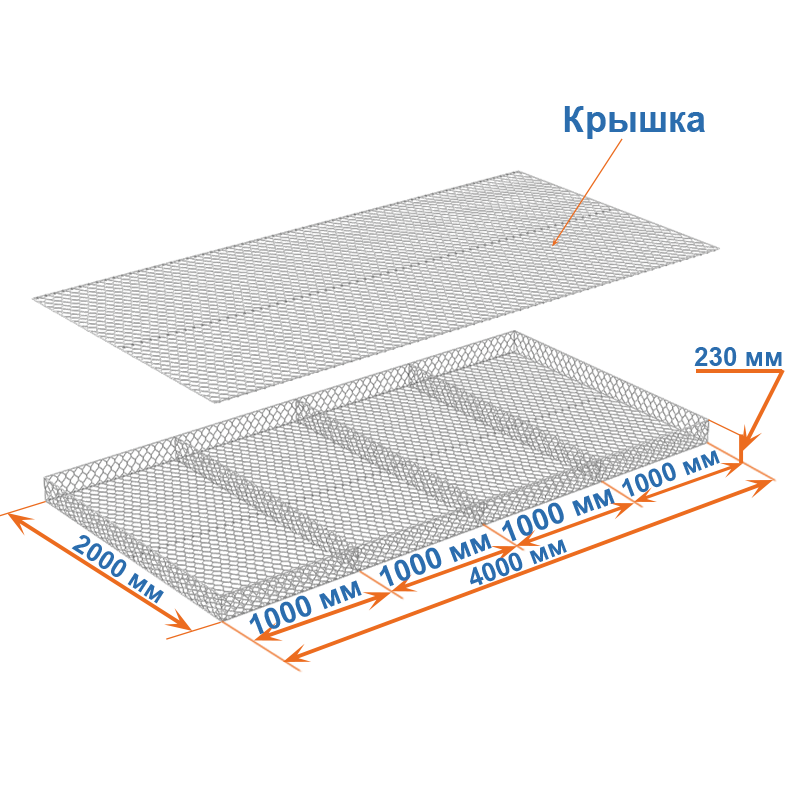 Габион матрац ГСИ-М 4х2х0,23 оцинкованный, Ø проволоки 2,2 мм, размер ячейки 6х8 см