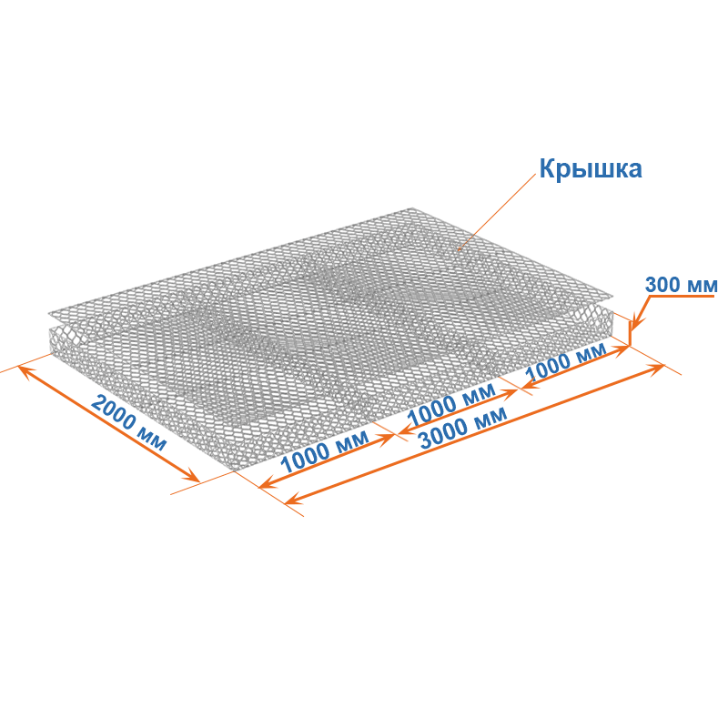 Матрасы Рено 3x2x0,3 — плоские габионные секции из сетки двойного кручения с ячейкой 60х80, проволокой 2,2 мм и покрытием Цинк.