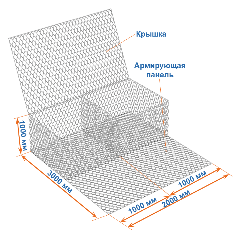 Состоит данный габион из основной части и армирующей панели, которая является продолжением основания конструкции.